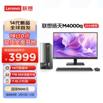 Lenovo Yangtian M4000q 2024 Commercial Office Desktop Computer Host (Core 14th Generation i5-14400 16G 1TB SSD) 23 inches