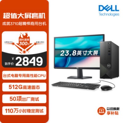 Dell Achieves 3710 Desktop Computer Host (Core 12th Generation i3-12100 8G 512GSSD) 23.8-inch Large Screen Display High Performance CPU