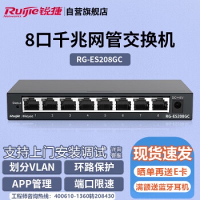 Ruijie 8-port fully gigabit network management switch RG-ES208GC security monitoring enterprise level office monitoring engineering switch