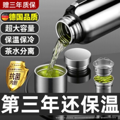 SZTAA high-end all steel insulated cup, male 316 stainless steel, large capacity tea separation with filter screen, pot steel, natural color 600ml (tea separation+cup cover)