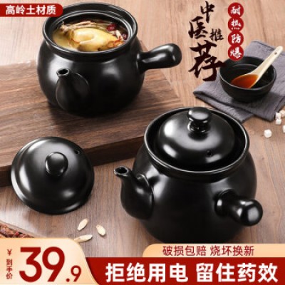 A 2L ceramic open flame heat-resistant traditional Chinese medicine pot for health preservation, a Chinese medicine cooking pot, and a household clay pot for cooking medicinal herbs
