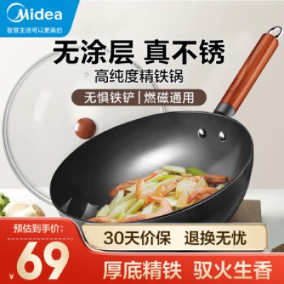 Midea wok iron pot 32cm uncoated precision iron pot for household use, not easy to rust, with a lid and magnetic ignition universal MP-CT32A10
