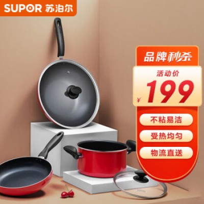 Supor SUPOR cookware set, non stick frying pan, frying pan, soup pot, three piece set, open flame special TP1501E