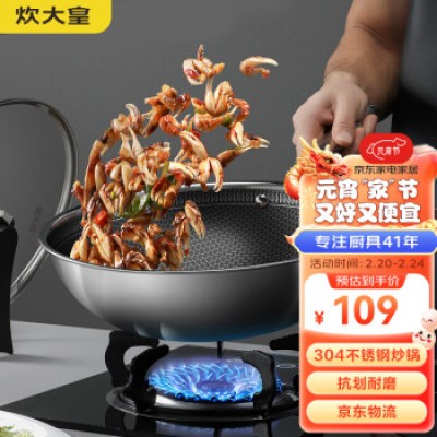 Joyoung wok 304 stainless steel honeycomb non stick vegetable fryer with enlarged flat bottom induction cooker, gas open flame universal 30cm