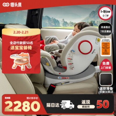 Owl (SAVILE) child safety seat 0-4-7 years old 360 degree rotation ISOFIX hard interface M178A Miao Zhuan PRO silver white