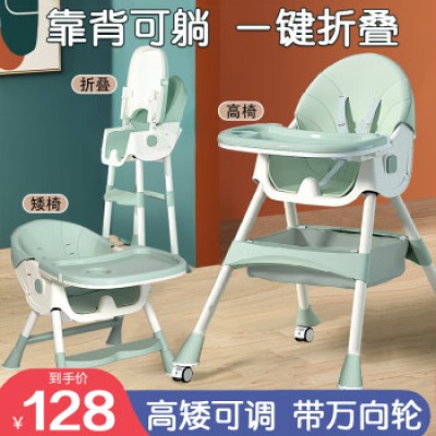 Xiyoumi Baby Dining Chair Children's Dining Table Chair Foldable, Portable, Anti rollover Multi functional Adjustable Dining Chair Morning Mist Green