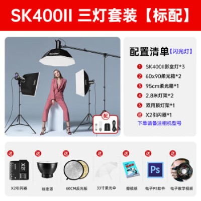 Shenniu SK400II second-generation flash studio ID photo portrait model e-commerce still life supplementary lighting photography studio film and television SK400II three light set+gift package