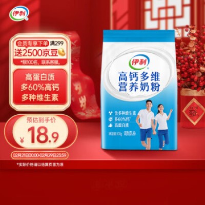 Yili High Calcium Multidimensional Nutritional Milk Powder 300g, Multiple Vitamins, 60% Calcium High Protein Whole Family Milk Powder